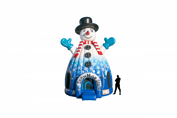 Imagine jumping into a winter wonderland with the Large Snowman Igloo Bounce. This inflatable brings the magic of snow days to life, featuring a gigantic, friendly snowman standing tall and inviting. Designed with an igloo-style interior, it offers ample space for bouncers to bounce around in the frosty dome. It's like having a holiday snow globe you can play inside, making it perfect for festive gatherings and wintry fun. Bring the joy of a snowy adventure right to your backyard or event, minus the chill, with this enchanting inflatable experience!